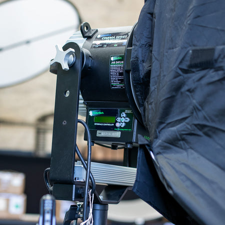 The AAdynTech JAB Hurricane is the most powerful compact all-weather IP65 rated LED fixture available on the market today. It delivers an impressive 2,443 fc @ 10 feet while consuming only 1.77 amps at full power and can also be operated via 28.8 volt DC battery power making it ideal for any remote production where power is limited. The IP65 rating totally protects the Hurricane from dust and water from any direction. The JAB Hurricane boasts fan-less convection cooling. Specially designed holographic lenses provide high optical efficiency by creating a single light-source, eliminating multiple shadows. These four quick change lenses vary the beam angle between between very narrow, narrow, medium and flood while maintaining a flat, even illumination field. Passive convection cooling provides silent operation and instant ON at all times ensures no warm-up wait time on set.