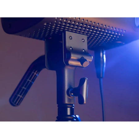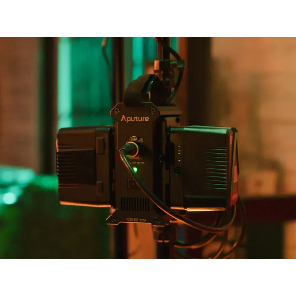 With an impressive 300W output, this light serves as an excellent key or fill light on any set. Its silent active cooling system ensures a quiet atmosphere, making it suitable for small studios, interviews, and indie film sets. Despite its powerful performance, the compact lamp head measures only 9.8 x 6.1 x 5.6", making it highly portable. It operates globally with its 100 to 240V power supply, and for situations without AC power, it can run on optional Gold or V-mount batteries using the separately available Aputure 2-bay battery power station. Additionally, a carry bag is included for convenient storage and transportation, adding to the overall versatility and practicality of the 300c RGB LED Monolight.