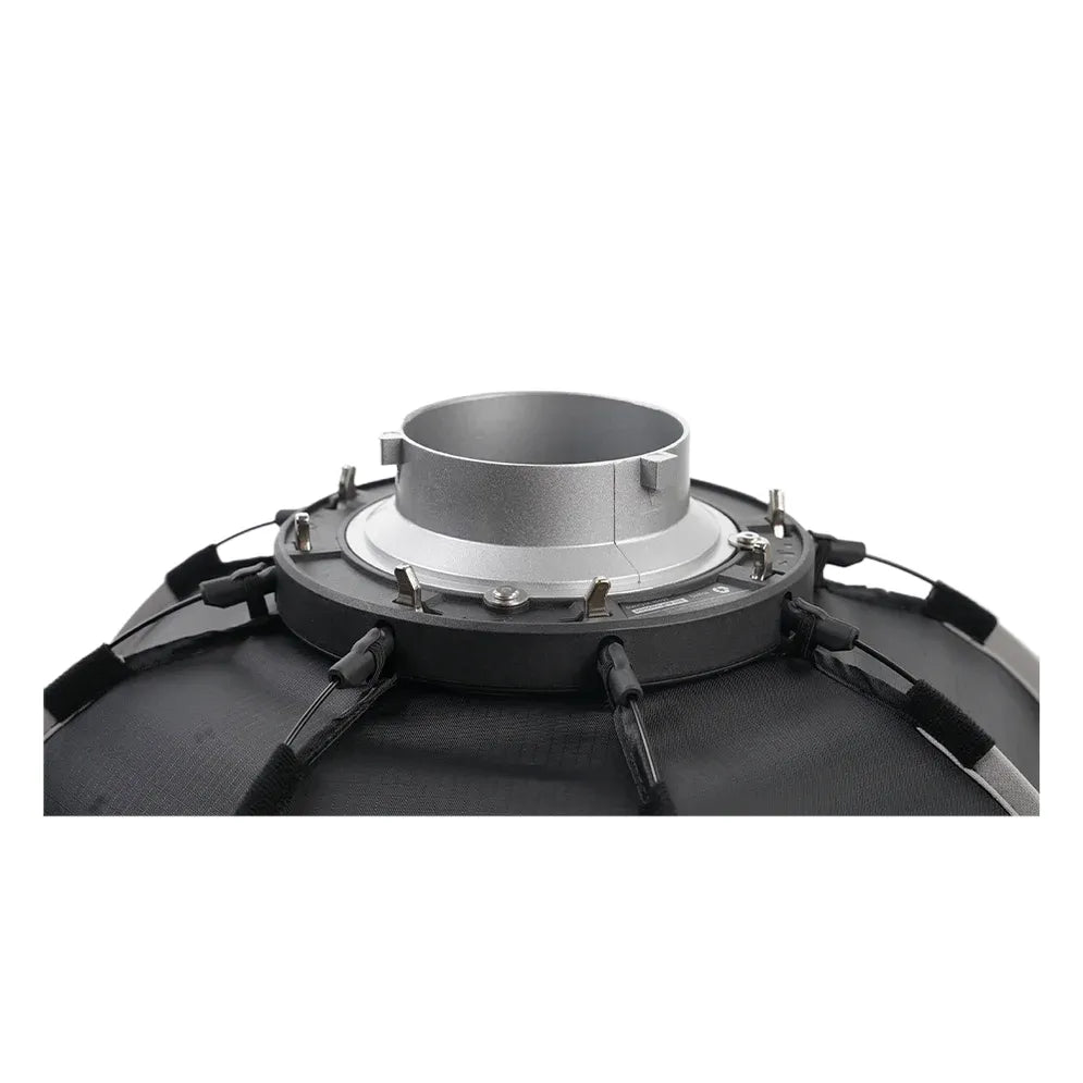 The Light Dome Mini SE enhances the output of soft light by utilizing a deep parabolic softbox shape combined with an octagonal front design and a highly reflective silver inner lining. This thoughtful design ensures an even distribution of light, allowing for a smooth transition of luminance from the center to the edges of the output. With this advanced configuration, users can effortlessly illuminate subjects and large areas with uniform lighting, eliminating concerns about unwanted hotspots.