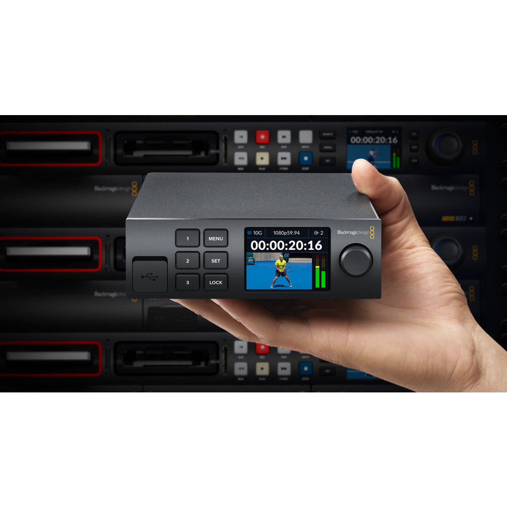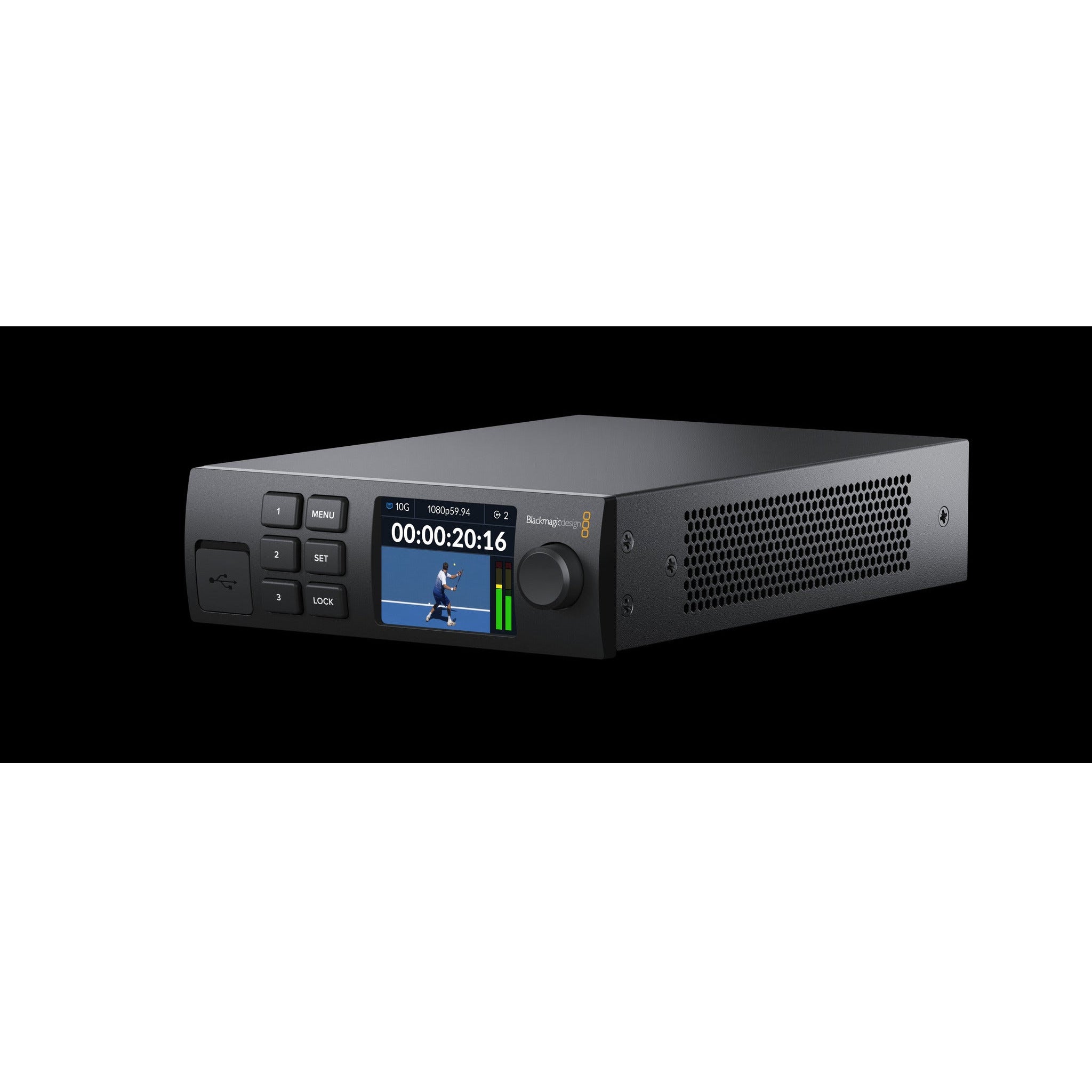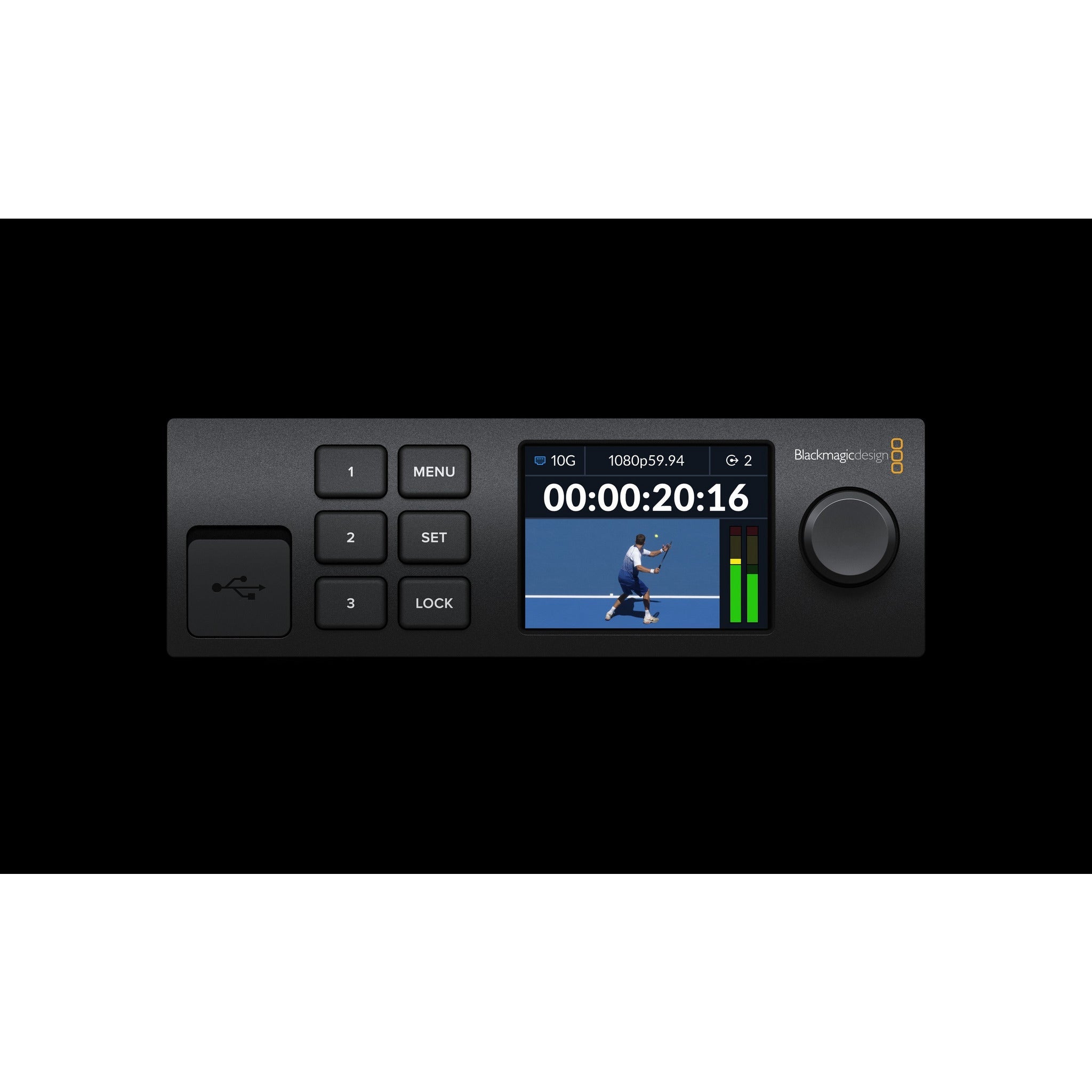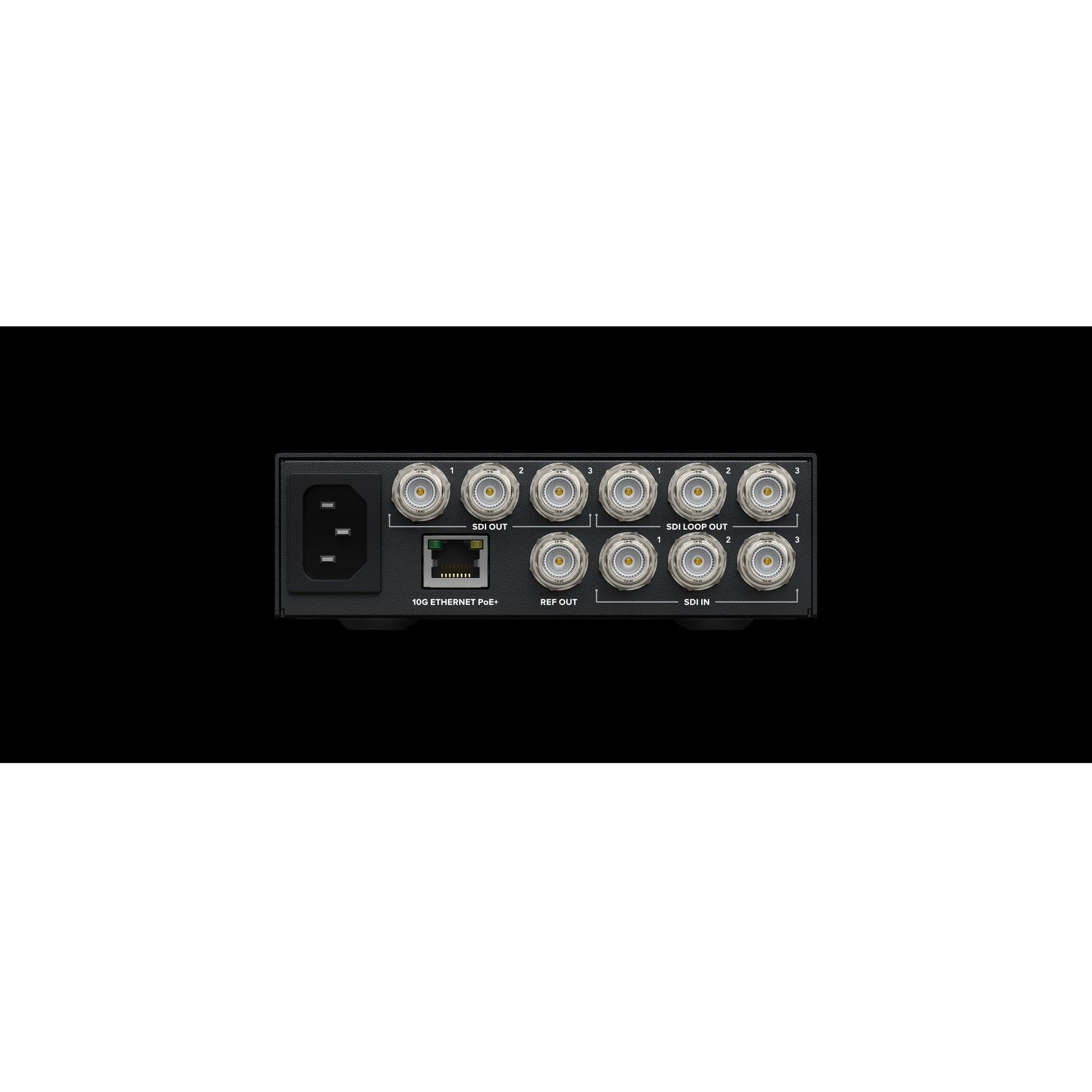 The Blackmagic 2110 IP Converter 3x3G is a versatile device that enables you to convert up to 3 separate 3G-SDI devices into 2110 IP video systems, thanks to its 10G Ethernet connection that can handle 3 video channels simultaneously. Each channel comes with its own independent SDI inputs and outputs, allowing you to connect up to 6 different SDI devices. Additionally, all 3G-SDI inputs come with loop outputs, making it possible to install the converter within existing SDI systems. The device also features a reference output that is timed to the 2110 PTP clock. With an elegant front panel that includes a color LCD for monitoring, menus, and diagnostics, you can easily route IP inputs from the panel.