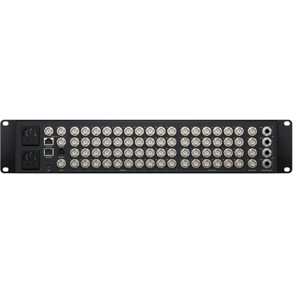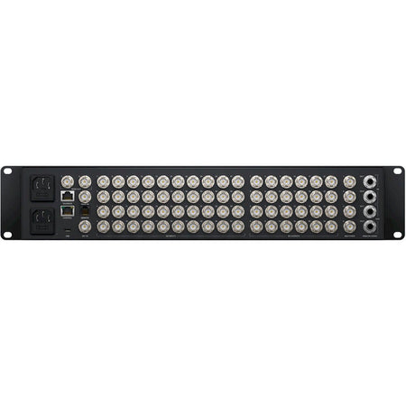 Designed with a compact rack mount and built-in control panel, the ATEM Constellation switchers provide easy operation during setup and emergency use. The large LCD screen displays program output and enables users to change switcher settings via on-screen menus. With connections for 3G-SDI or 12G-SDI inputs, aux outputs, balanced audio, and Ethernet for control, the rear of the switcher is perfect for portable live production. The top 4 M/E models also feature RS-422 for serial control and MADI digital audio connections.
