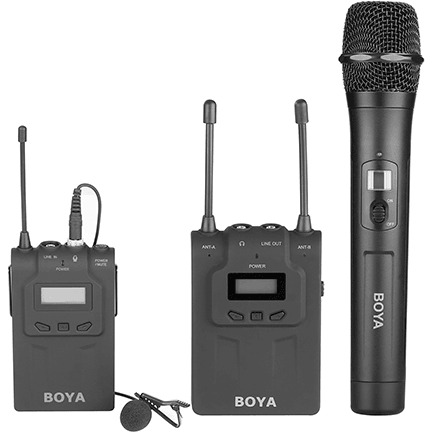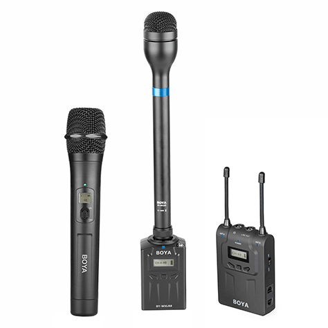 The BOYA BY-WHM8 provides professional,portable wireless operation in the 24MHz band, is easy to operate and affordable. It features an easy to read LCD display, easy one-touch channel search and lightweight plastic housing. The BY-WXLR8 Plug-On XLR Transmitter for BOYA BY-WM6 and BY-WM8 UHF Wireless Mic System. Allows you to connect any XLR microphone the the BY-WM6 and BY-WM8 wireless receiver. It features an easy to read LCD display, a wide switching RF bandwidth, a Mic/Line/MIX switchable inputs, and digital circuitry, rugged lightweight plastic housing, and it's suitable for DSLR cameras for videography, field recording, broadcast TV, and electronic news gathering (ENG) applications.