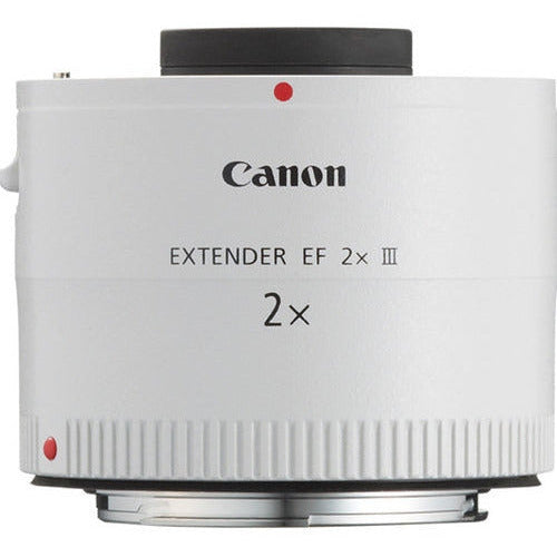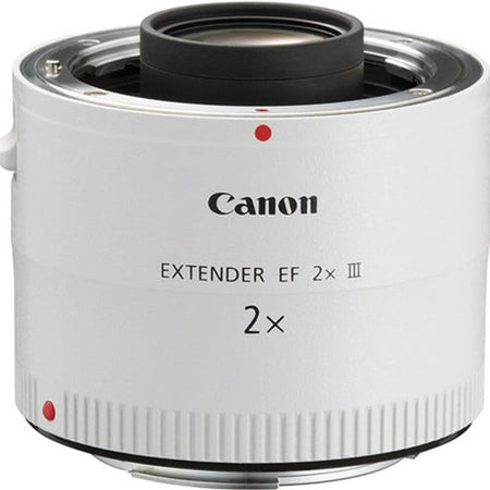 The Extender EF 2X III from Canon is designed for select Canon EF mount L-series telephoto lenses. It increases the focal length of a lens by a factor of 2x while still delivering superb image quality. To ensure the best possible image quality in all shooting conditions, it combines redesigned optics, improved data communication between lens and camera and enhanced environmental protection. It is ideal for photojournalists and wildlife, nature and sports photographers who need to get close to distant and challenging subjects and it reduces the need to carry heavy telephoto lenses. The Extender EF 2x III features nine optical elements in five groups, ensuring improved optical performance. All optical elements have Canon's Super Spectra coating to reduce ghosting and flare. A new Fluorine Coating on the front and rear elements makes marks, such as spots left by water or fingerprints, much easier to clean than standard coatings. To facilitate the accurate transfer of imaging data between the lens and camera body, the extender features an integrated processor which ensures all focusing, metering and ID information is available - allowing the photographer to capture balanced, well-exposed images. When combined with the latest range of premium Canon L-series lenses, these extenders enable AF accuracy even when capturing moving subjects. When attached, the 2x extender reduces the effective maximum aperture by 2 stops. A carefully positioned lens release mechanism also makes it easy to mount the extenders quickly, reducing the time that the camera and lens are exposed to the environment. The extenders offer the exceptional build-quality expected from Canon's professional products, and are resistant to both dust and water, allowing photographers to use them in extreme shooting conditions.