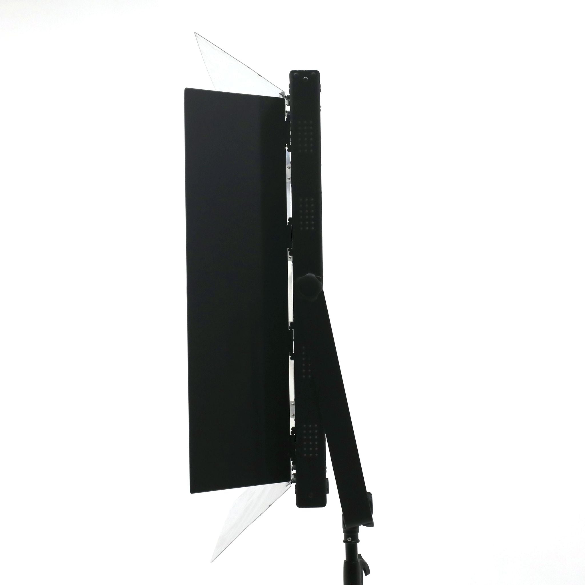- integrated four leaf mirrored barndoors for directional light control