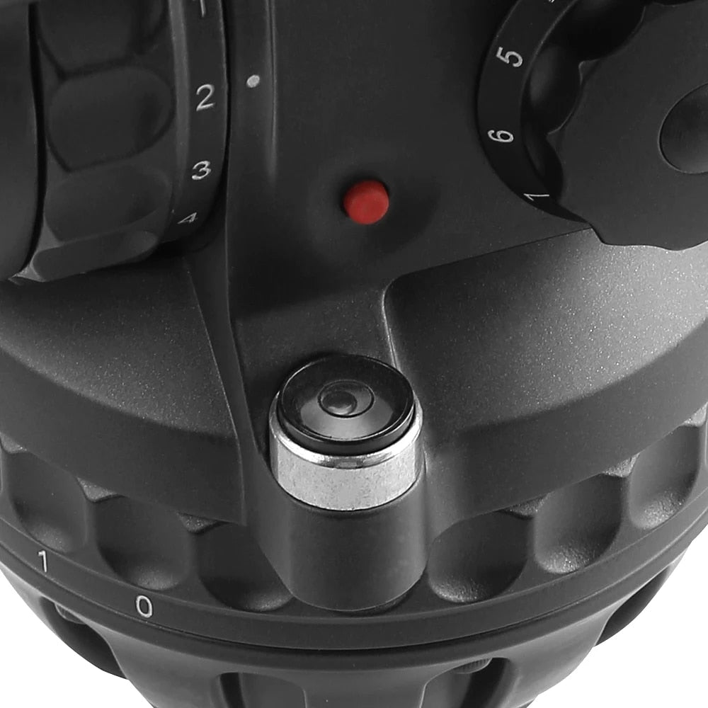 - The illuminated bubble level is activated by pressing a small red button on the head, so you can level the head in dim lighting conditions.