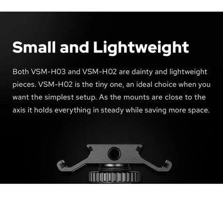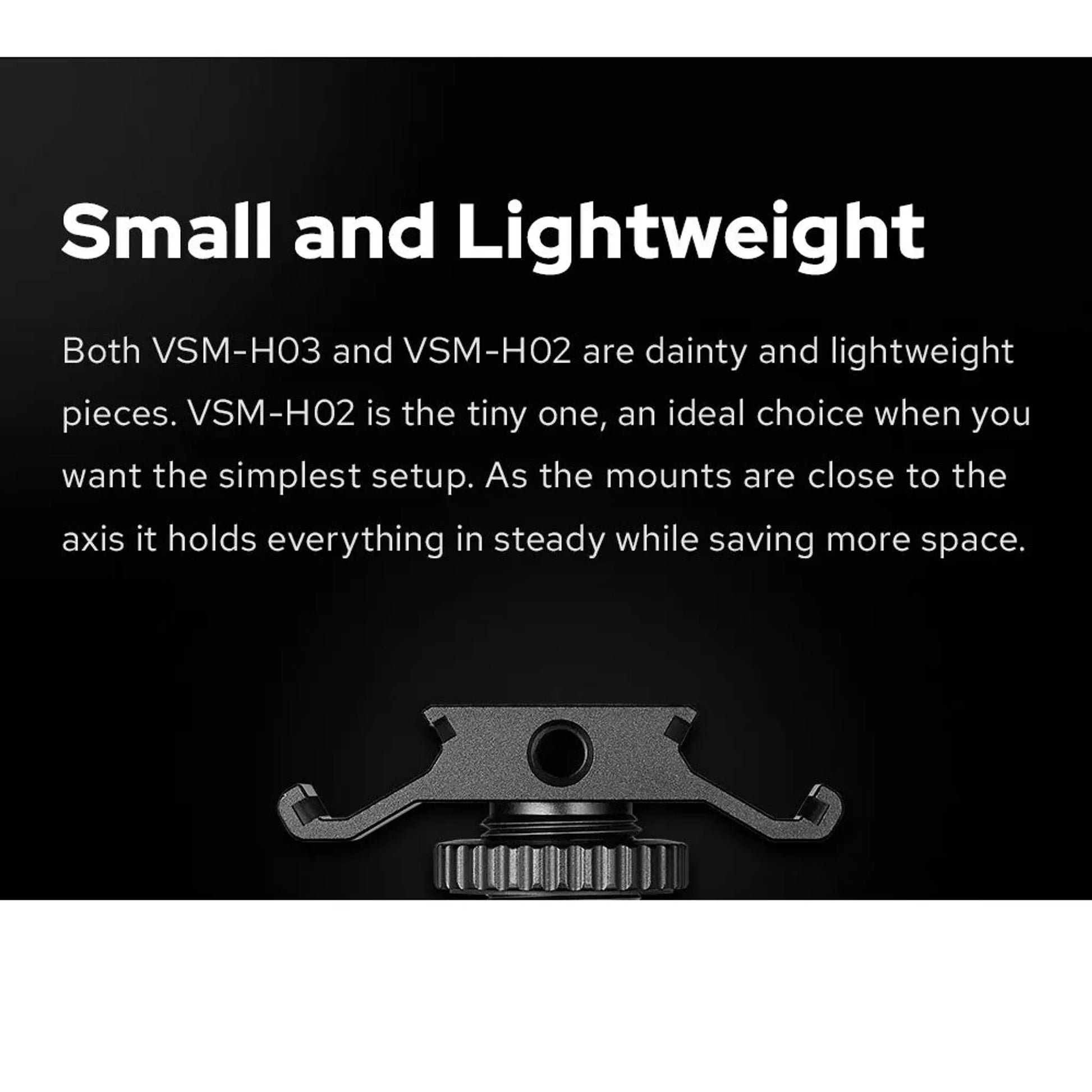 The VSM-H03 and VSM-H02 are both lightweight and well-designed accessories. Opt for the VSM-H02 if you prefer a simple setup. With mounts close to the axis, everything remains secure, saving valuable space.