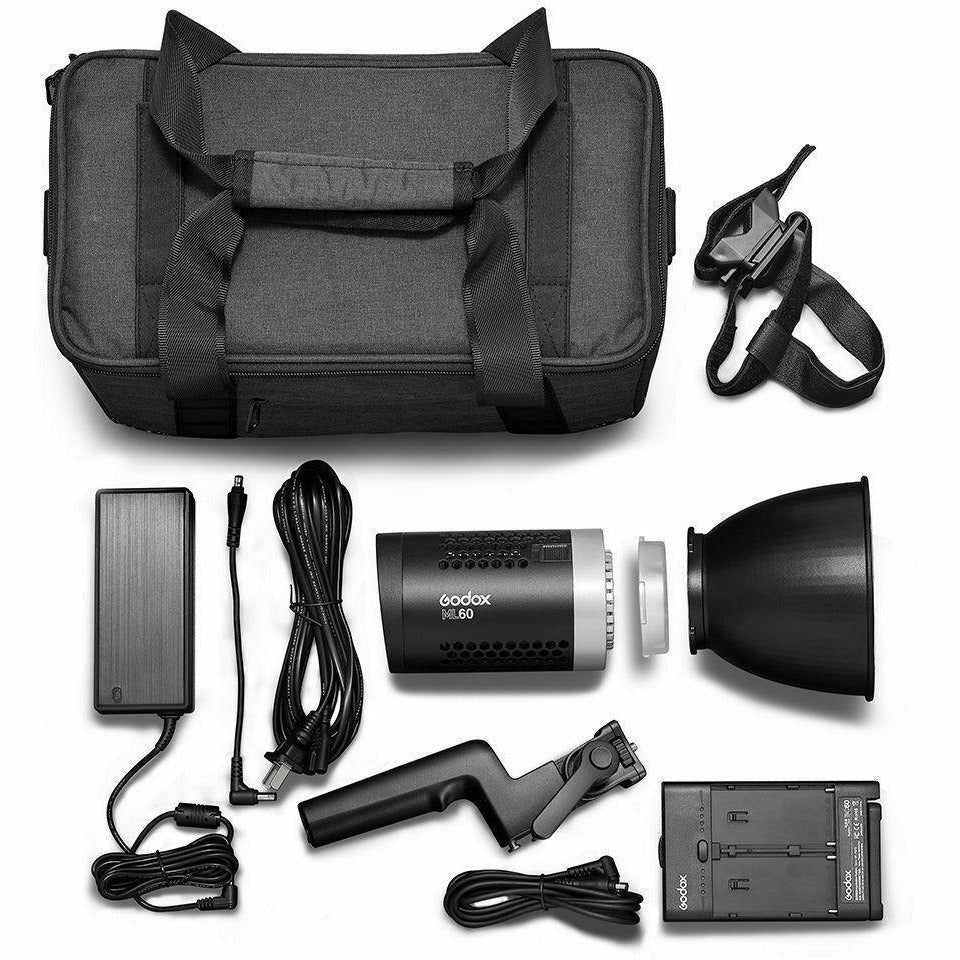 Made with run-and-gun shooting in mind the ML60 has a removable handle as well as an umbrella socket. Ready for worldwide use, the ML60 runs on 100 to 240V, thanks to the included AC adapter, but it will also run on two NP-F970 batteries when AC power is unavailable. Godox has included a carrying case for storage and transport.