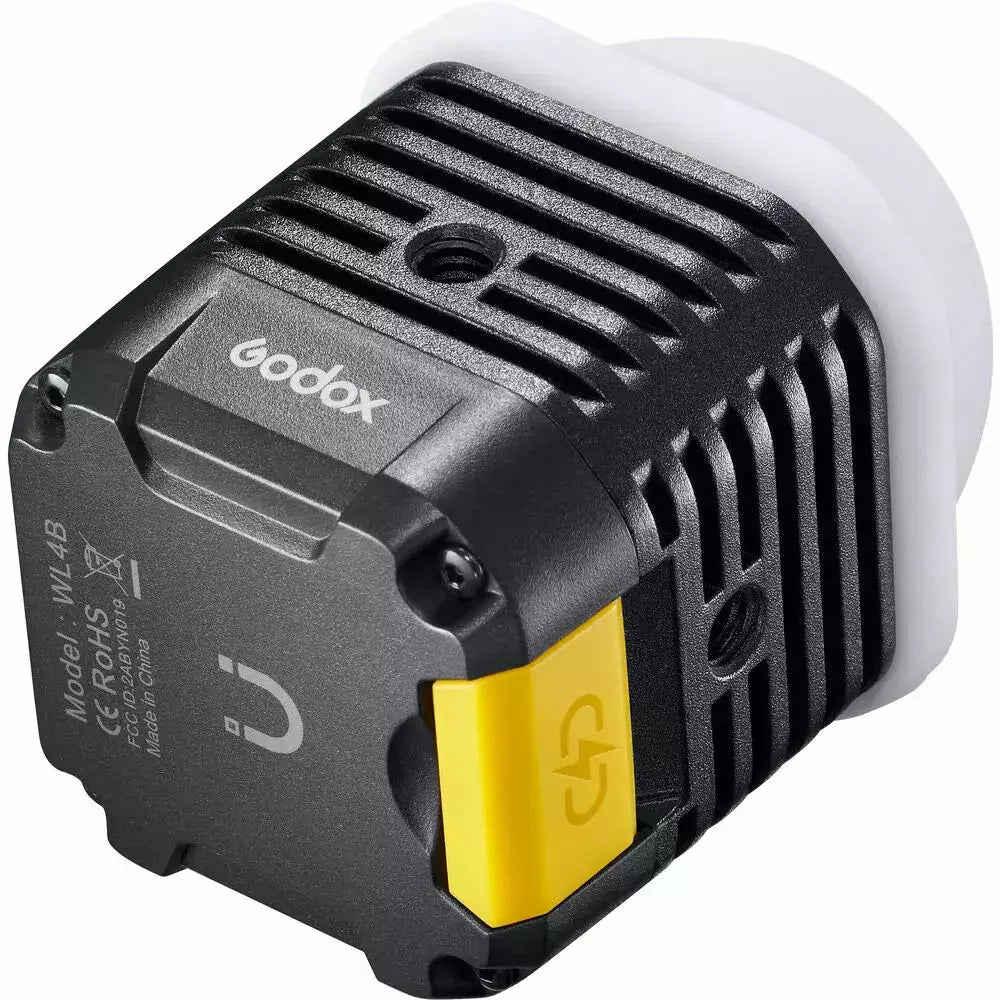 The WL4B is controlled either manually or via Bluetooth using the Godox Light App, which supports brightness adjustments, as well as mode selection. The 1/4"-20 female threads allow you to mount the WL4B onto a variety of optional camera accessories, and a built-in magnet allows you to mount the fixture on metallic surfaces. The fixture has an integrated battery that charges via a USB Type-C input, and out of the box, the light can be submerged to a depth of 30m, so there is no worry about using it during inclement weather.