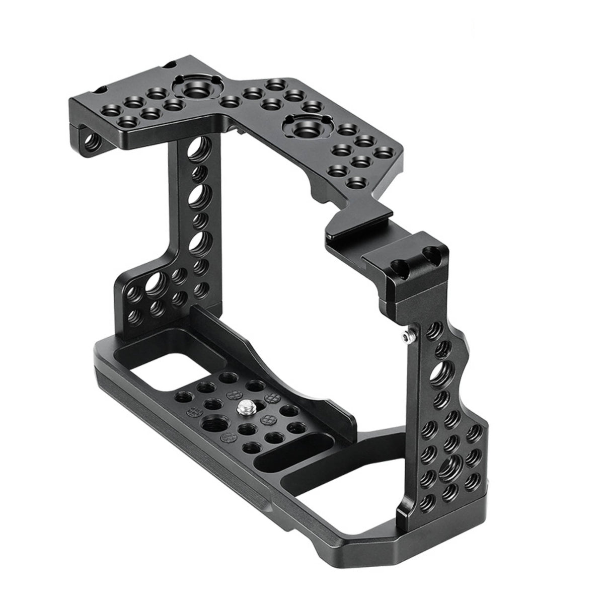 - Integrated cold shoe mount on the top of the cage provide a quick and easy attachment point for external devices. \n