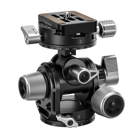 \nGeared Precision: The 3-axis geared mechanism provides precise control over camera positioning. This feature is crucial for capturing detailed and accurate images, especially in architectural photography, product shots, and any scenario requiring meticulous composition.
