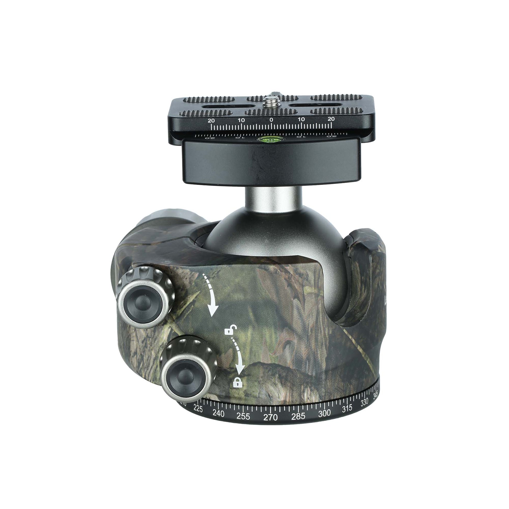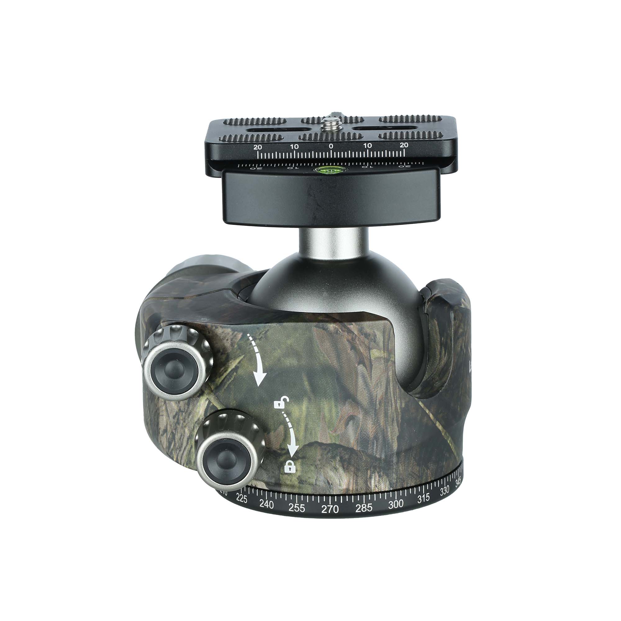Leofoto LH-55LR 55mm Low Profile Ball Head with LR-70 Quick Release Lever Clamp and QP-70N Plate - Camouflage