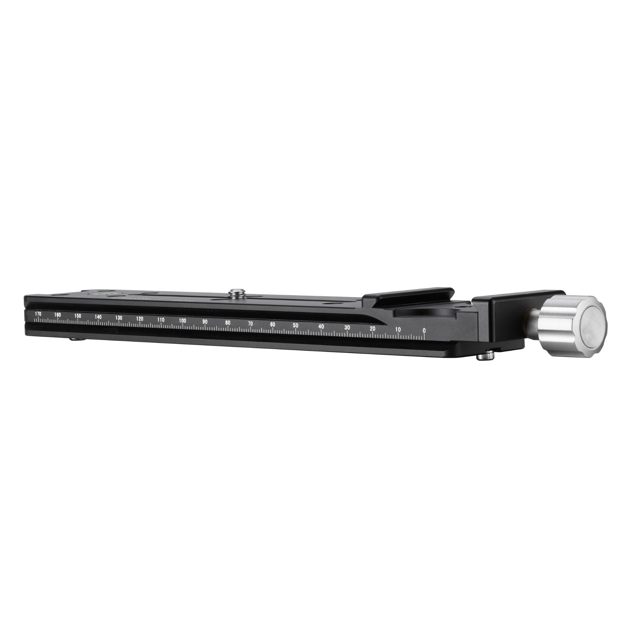 \nEnhanced Stability and Alignment: The rail features a built-in spirit level at the front end, allowing for easy and accurate levelling. This is particularly useful in panoramic photography, where precise alignment is crucial for seamless stitching of images.