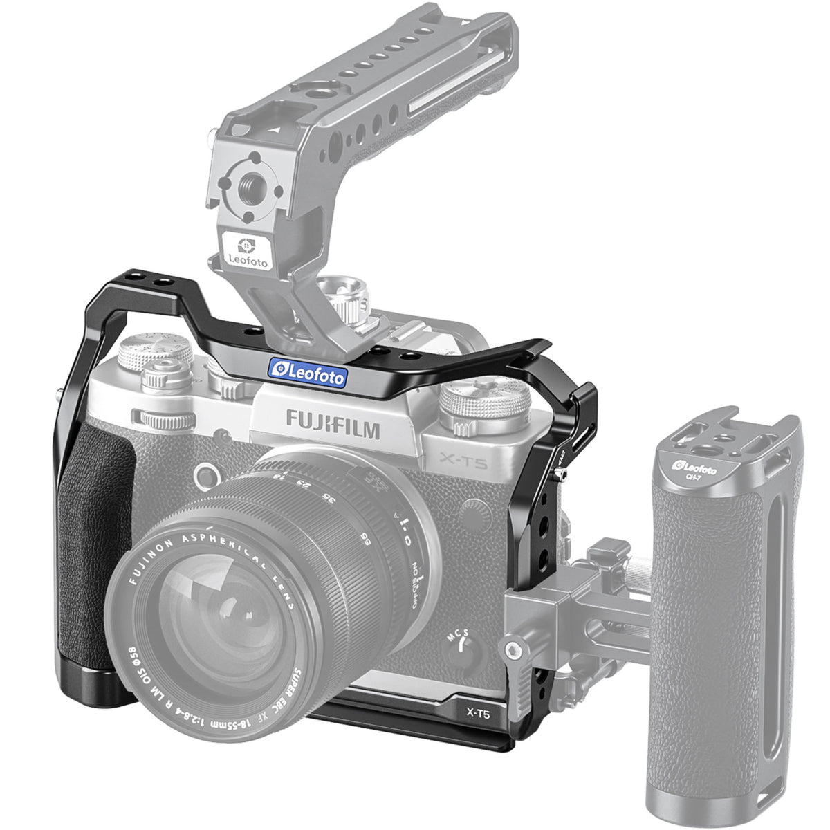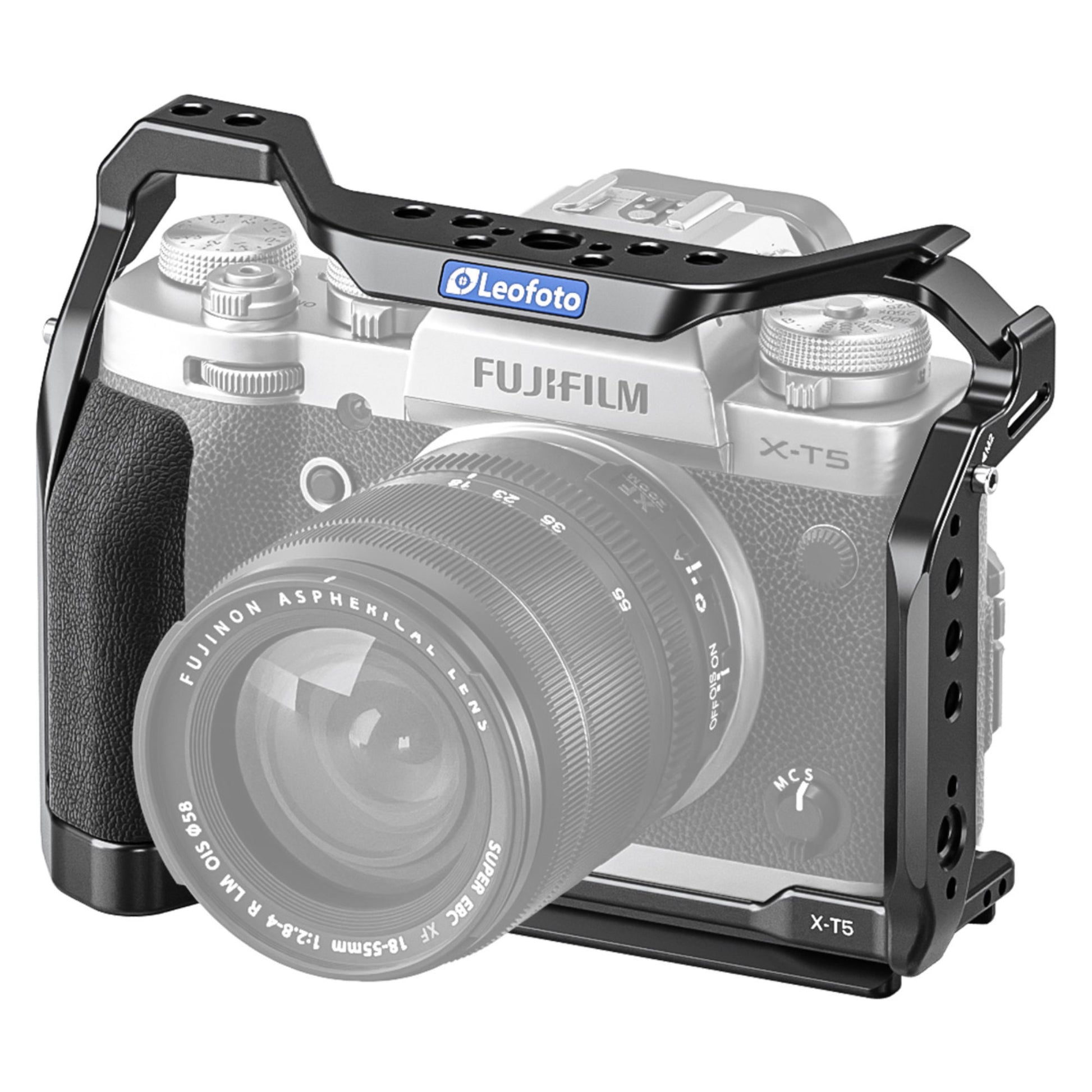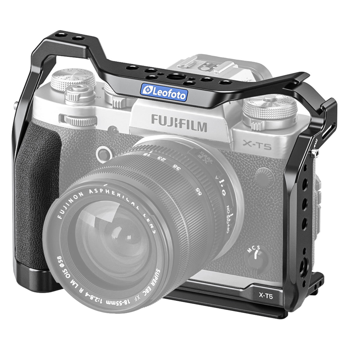 \nThe Leofoto X-T5 Camera Cage is specifically designed for the Fujifilm X-T5, offering unparalleled protection and functionality for professional photographers and videographers. Precision CNC machined from high-grade 6061-T6 aluminum alloy, this custom camera cage ensures durability and lightweight performance. The robust construction features a 1/4''-20 mounting screw, making it compatible with any Arca-Swiss style clamp. \n \nThe X-T5 camera cage is engineered to fit the Fujifilm X-T5 body perfectly, ensuring that all buttons, dials, and battery compartments are fully accessible without any interference. The cage includes multiple 1/4'' and 3/8'' mounting threads, allowing for the attachment of various accessories such as microphones, monitors, handles, and lights. Additionally, it features an Arri location socket and a cold shoe mount for even more versatility. \n \nOne of the standout features of this cage is the magnetized wrench, conveniently integrated into the bottom of the cage. This tool is easily accessible, making adjustments on the go simple and hassle-free. The cage also includes multiple silicone pads internally to prevent sliding and scratching of your camera. \n \nThe Leofoto X-T5 Camera Cage is equipped with three anti-twist location points � one on the bottom and two on the side. These points prevent the camera from twisting within the cage, ensuring a secure fit and increased stability during use. For those who need to lock the camera on the side of the cage, it is recommended to remove the camera strap ring for a more secure setup. \n \nDesigned with the professional in mind, this cage is perfect for any shooting scenario, from handheld run-and-gun shooting to tripod-mounted studio setups. The sleek, ergonomic design maintains the camera's aesthetic while adding a layer of rugged protection. \n-