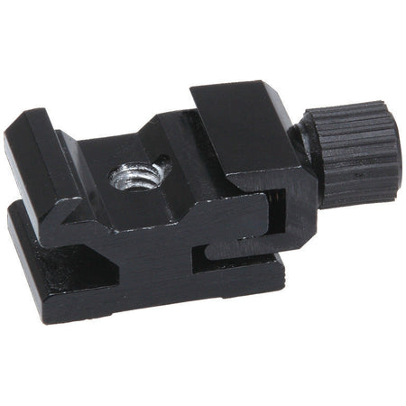 Featuring a clamping-style lock, this mount securely holds the heaviest shoe units. It will not loosen up even under the most rigorous use, and a locating pin ensures that it won't twist on the bracket. The bracket shoe mount attaches with the bracket's mounting knob. Machined, solid aluminium construction. A 1/4" standard tripod screw thread, you can fix it on the tripod or other brackets.