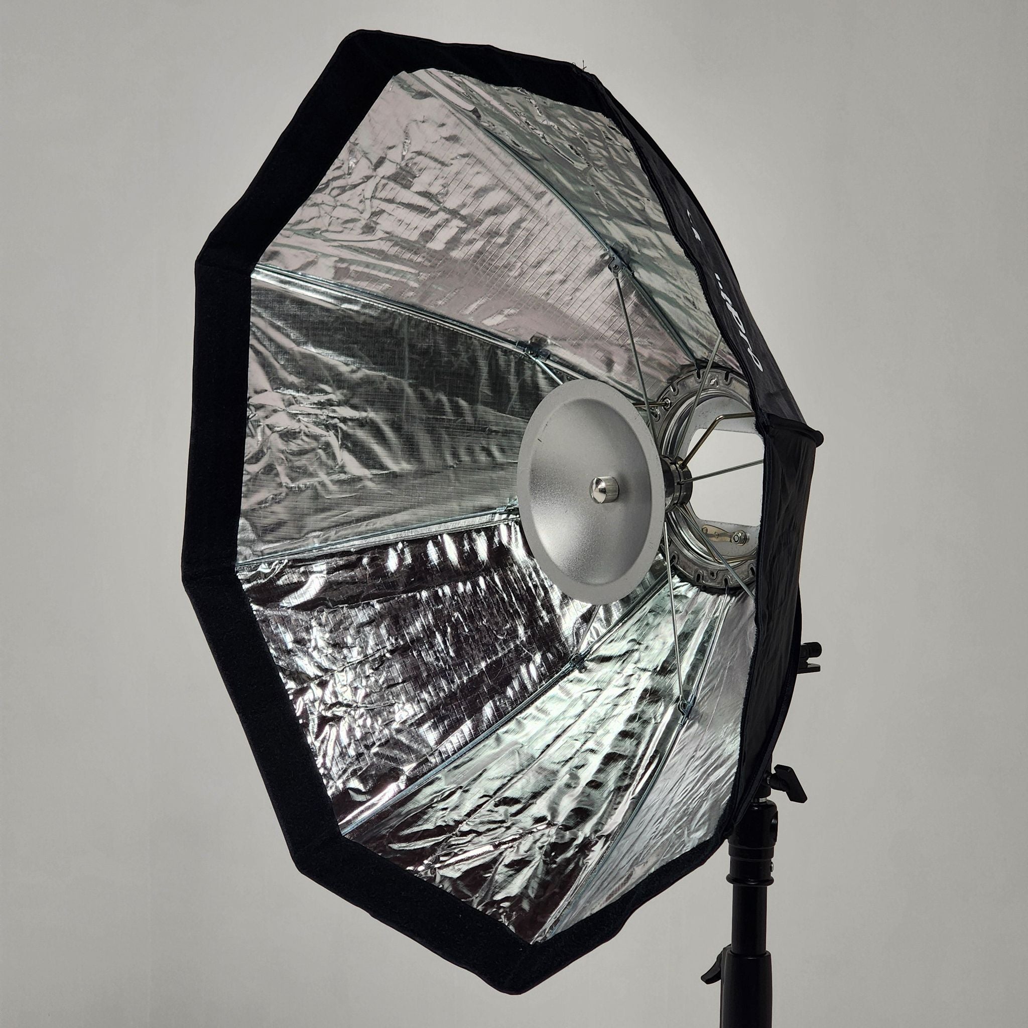 The 65cm Speed Light Softbox with Beauty Dish functionality is a versatile lighting accessory designed for photographers. Featuring a silver reflective interior, it ensures high-quality light output.