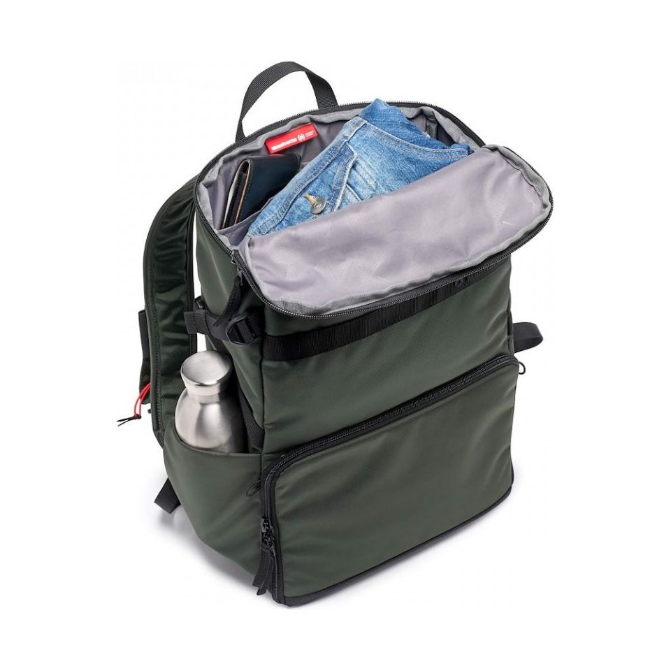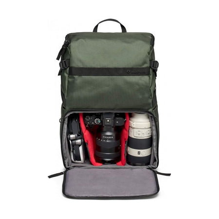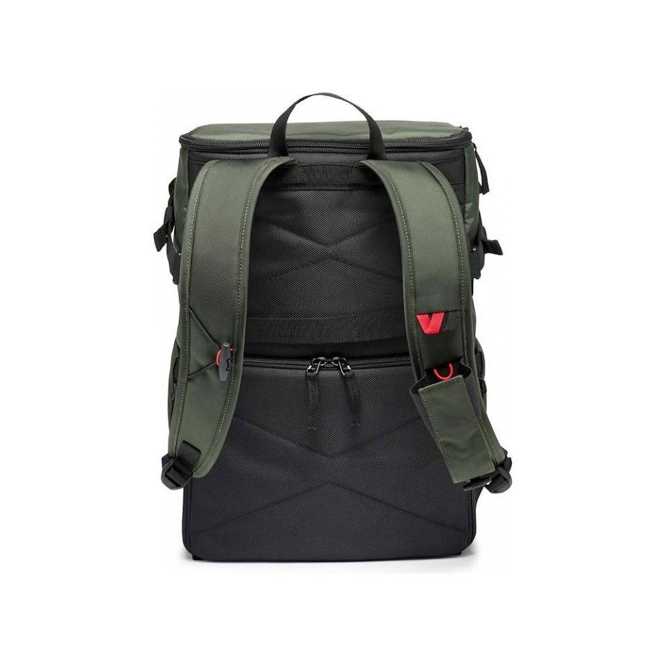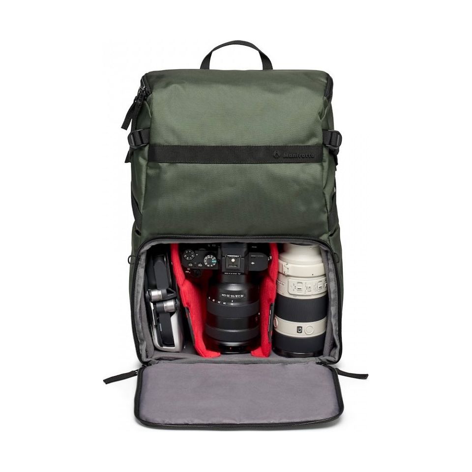The padded removable camera compartment incorporates the Manfrotto M-Guard™ Protection System. This system utilizes special high-density EVA foam to provide exceptional shock absorption in a slim profile. The folding patterns of this system are customizable, allowing you to fully protect your camera gear while maximizing the use of space. The backpack also includes a dedicated removable padded laptop sleeve that can accommodate up to a 14-inch laptop. This sleeve can be accessed through the top and used separately.