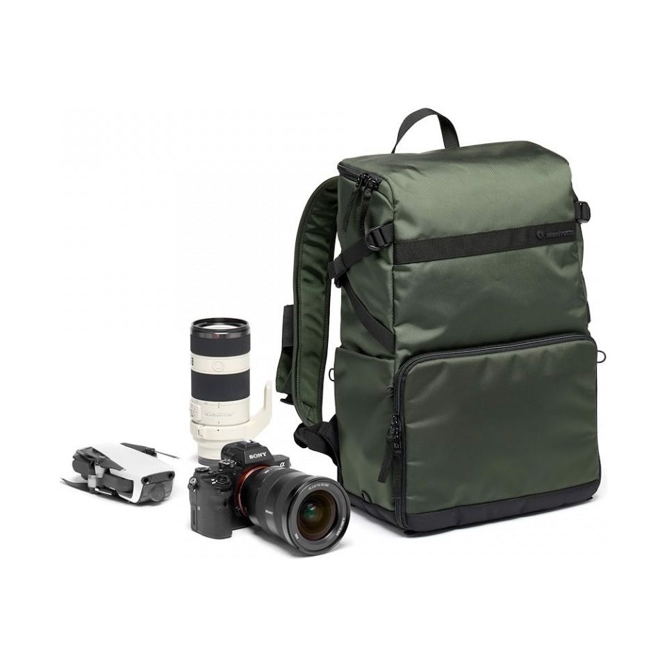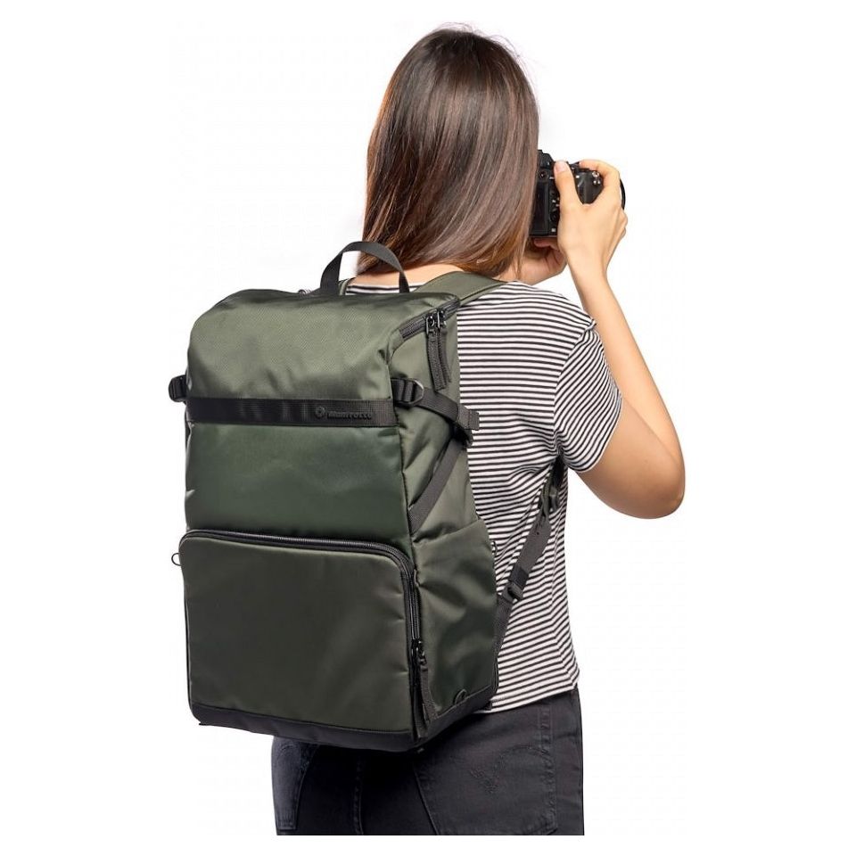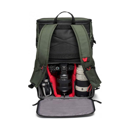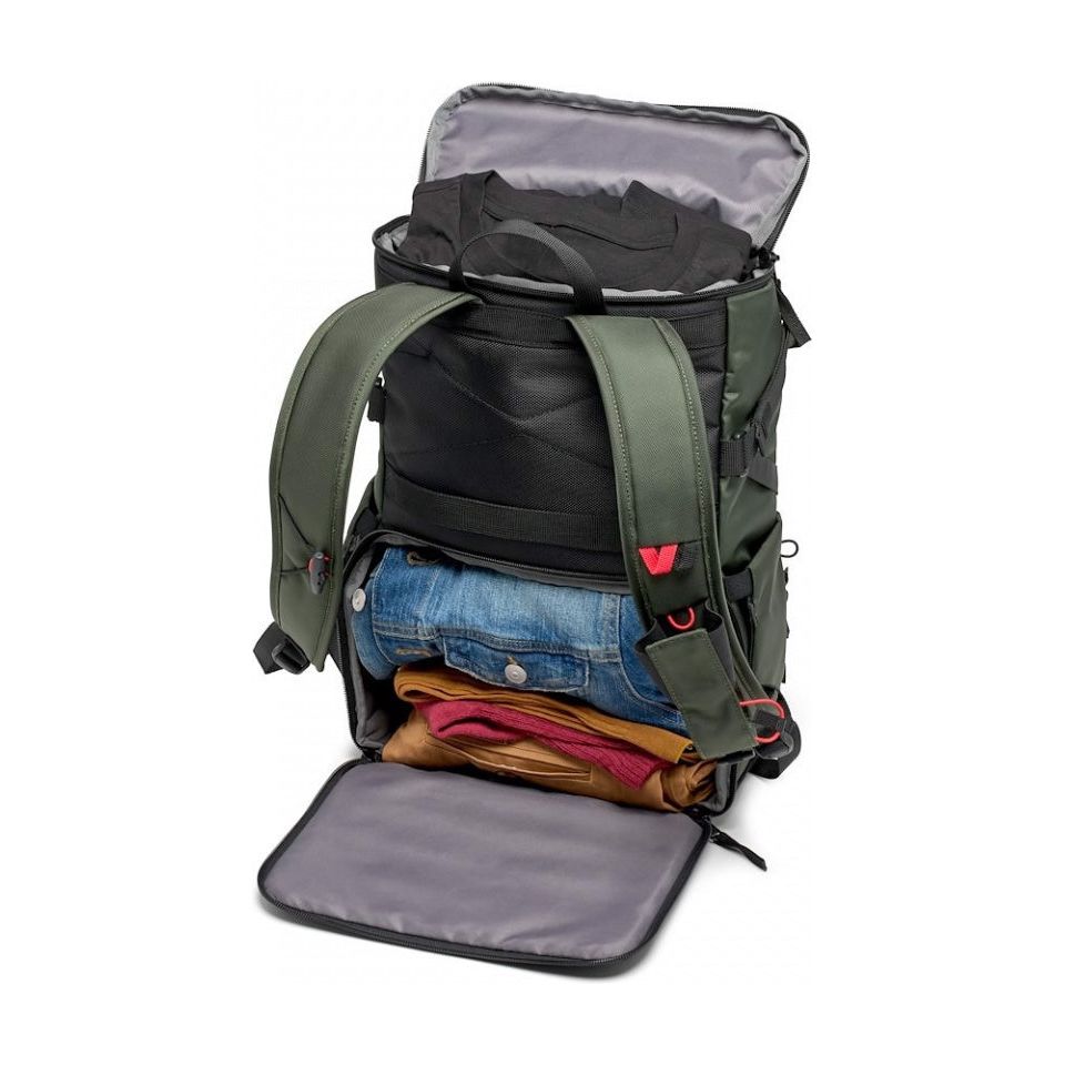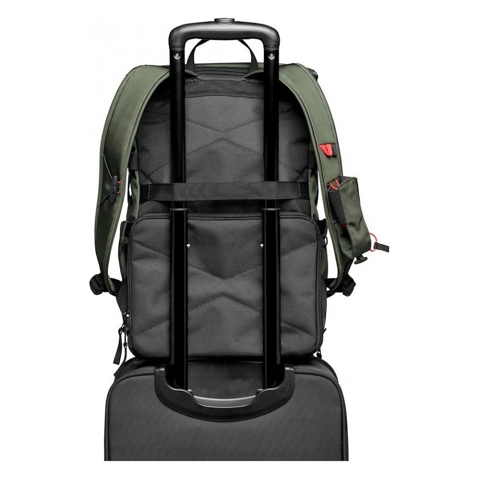 The padded removable camera compartment incorporates the Manfrotto M-Guard™ Protection System. This system utilizes special high-density EVA foam to provide exceptional shock absorption in a slim profile. The folding patterns of this system are customizable, allowing you to fully protect your camera gear while maximizing the use of space. The backpack also includes a dedicated removable padded laptop sleeve that can accommodate up to a 14-inch laptop. This sleeve can be accessed through the top and used separately.