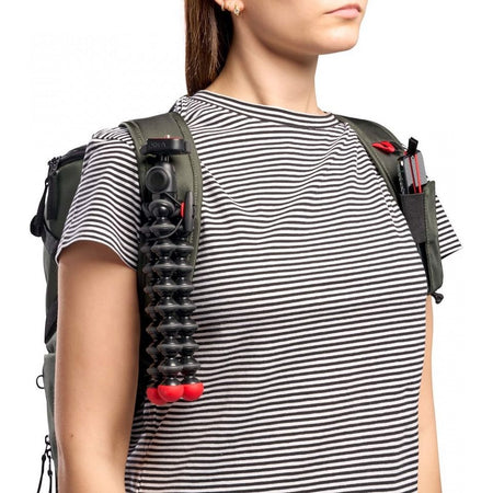- Double side pockets for small tripods or water bottles