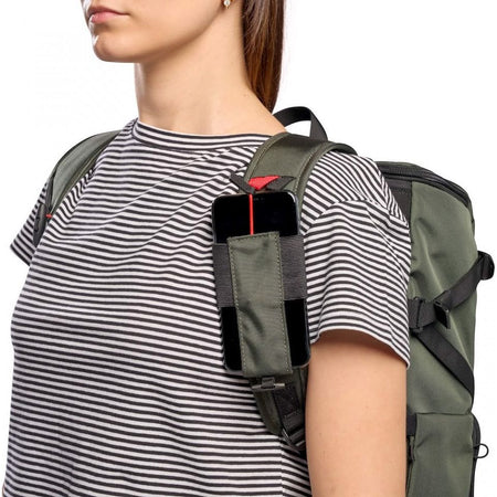 To protect your gear from moisture and rain, the Manfrotto Slim Backpack is constructed from water-repellent material. It also offers compatibility with the Street Crossbody smartphone Pouch (sold separately) for added space and convenience.