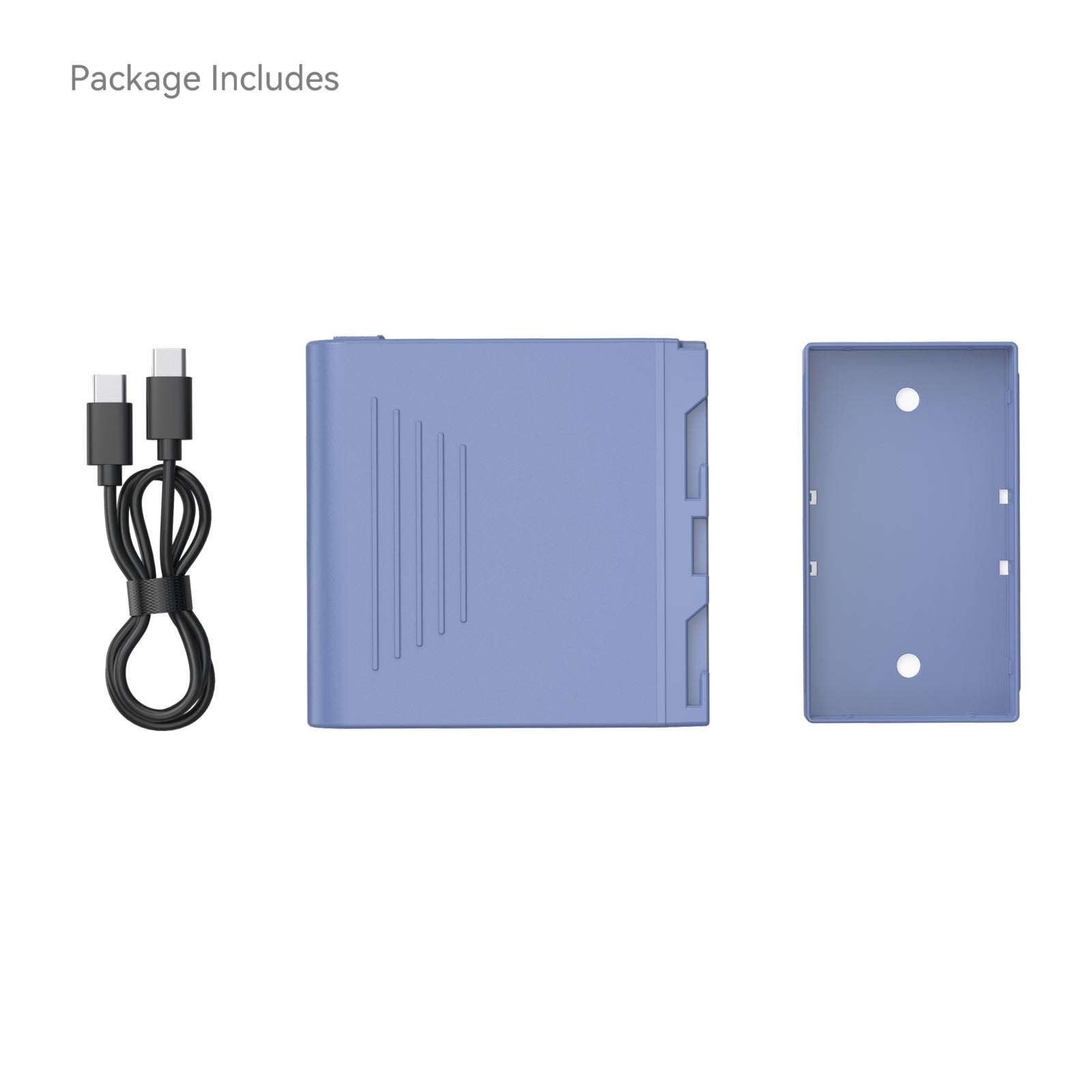 SmallRig NP-F970 USB-C Rechargeable Camera Battery 4267 comes with a USB-C input/output port to be charged via a portable charger, power strip, car charger, or dedicated charger and with a USB-A output port to turn itself into a power bank, which can power up a smartphone, iPad and other devices. Its USB-C port supports PD 3.0 protocol, making the battery full in just 6 hours. 10500mAh large capacity ensures equipment runs for a prolonged time; indicators help check battery status. Highly compatible and versatile, this item also supports such rigs as a camera, LED video light, monitor, slider, etc. It features a fire-resistant, durable ABS and PC shell, frosted to have a delicate touch. Indicator Button: Short-press to check the power status, when LED lights stay on for the 30s and the USB port supplies power; double-press to turn it off. Status Indicator: Power status: 4 LED lights display power percentage—one for 1-25%, two for 25%-50%, three for 50%-75%, and four for 75%-100%; blinking light means low battery; lights keep flashing when charging and stay on when discharging. Certifications: FCC / UL / UKCA / CE / RoHS / ISED