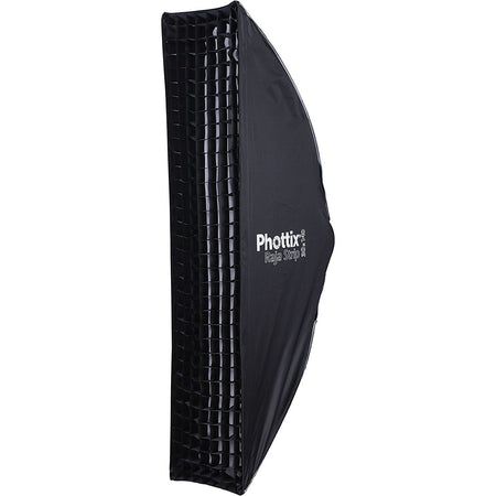 This 30 x 140 cm Phottix Raja Strip Softbox with Grid is designed for fast and easy assembly and disassembly, featuring durable construction with heat-resistant fabric. With a centralized metal joint, the softbox opens like an umbrella, saving you the hassle of attaching or removing individual rods, allowing you to start shooting in seconds. The softbox comes with a standard Bowens S-mount speed ring that works with a variety of lights, and optional Elinchrom and Profoto mounts can be added to expand the list of compatible gear.